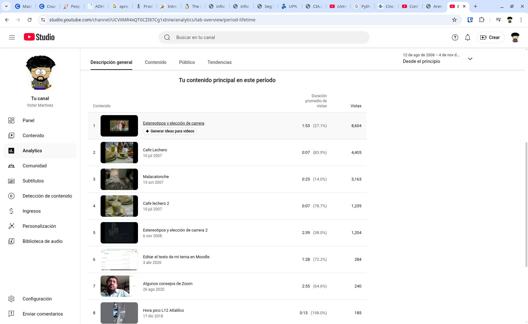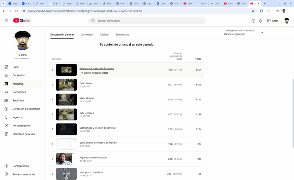 Son las estadísticas desde 12 de agosto de 2006 al 4 de noviembre de 2025, por eso digo que no son tan popular, a lo mejor haciendo un análisis por caso si fueron populares y útiles en su momento, pero no voy que vuele para youtuber o influencer…